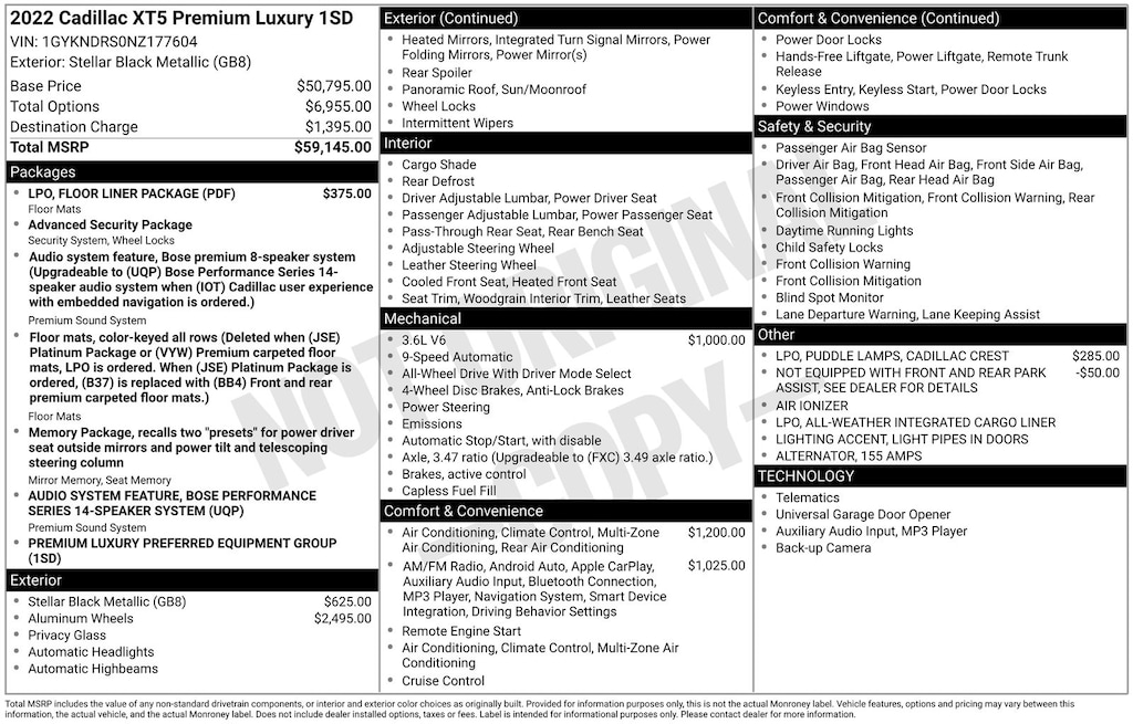 - Radio: Cadillac User Experience w/Embedded Nav$1,025
