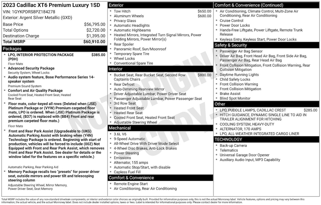 Safety and technology are also paramount in the XT6, with features like Automatic Emergency Braking, Front and Rear Park Assist, and the OnStar and Cadillac Connected Services system keeping you connected and protected.