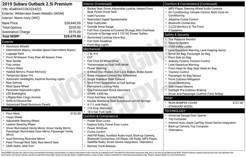 Discover the perfect blend of rugged capability and refined sophistication with this stunning 2019 Subaru Outback 2.5i Premium. This exceptional SUV is more than just a practical choice - it's a vehicle that embodies the adventurous spirit and unwavering performance Subaru is renowned for.