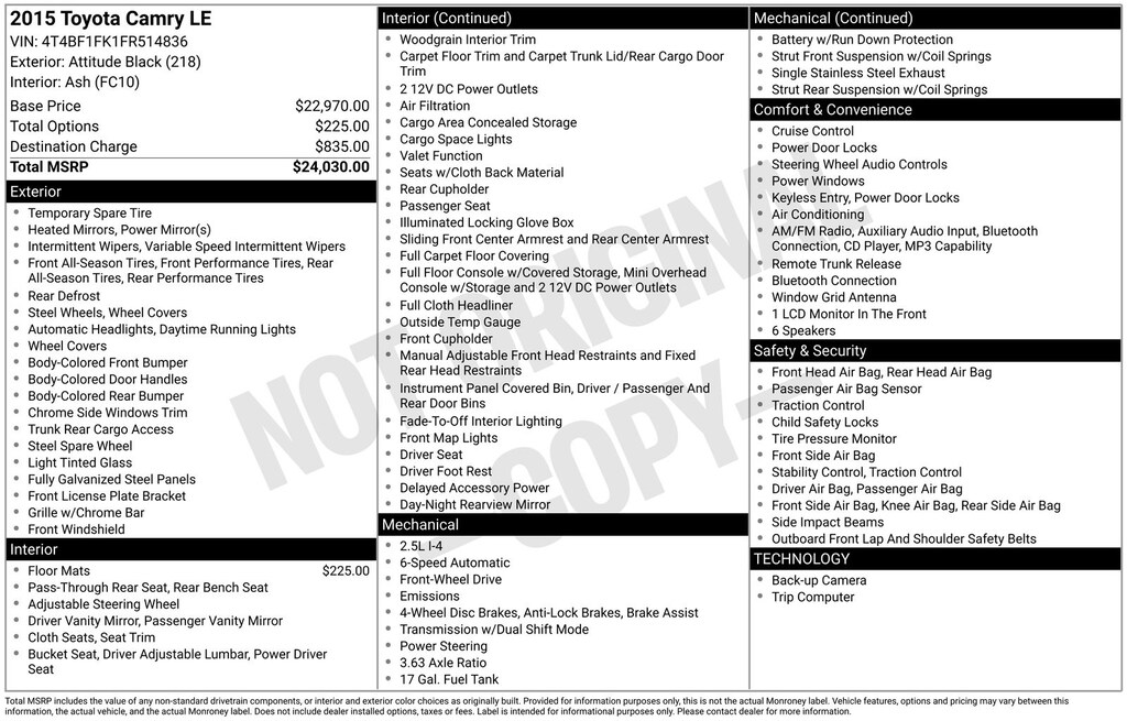 2015 Toyota Camry FWD 6-Speed Automatic 2.5L I4 SMPI DOHC